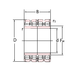 The cylindrical rollers are in contact with the raceway gauge line, and have a large radial load capacity, which is suitable for bearing heavy loads and shock loads, and is also suitable for high-speed rotation. Type N and Type NU can move axially and can adapt to changes in the relative position of the shaft and housing due to thermal expansion or mounting errors, making them ideal for use as free-end bearings. The NJ type and NF type can withstand a certain degree of unidirectional axial load, and the NH type and NUP type can bear a certain degree of bidirectional axial load. The inner or outer ring can be separated for easy assembly and disassembly. The four-row cylindrical roller bearings can withstand large radial loads and shock loads, with high machining accuracy and are suitable for high speeds. It is mostly used on the rolls of rolling mills, but it can also be used in other applications.